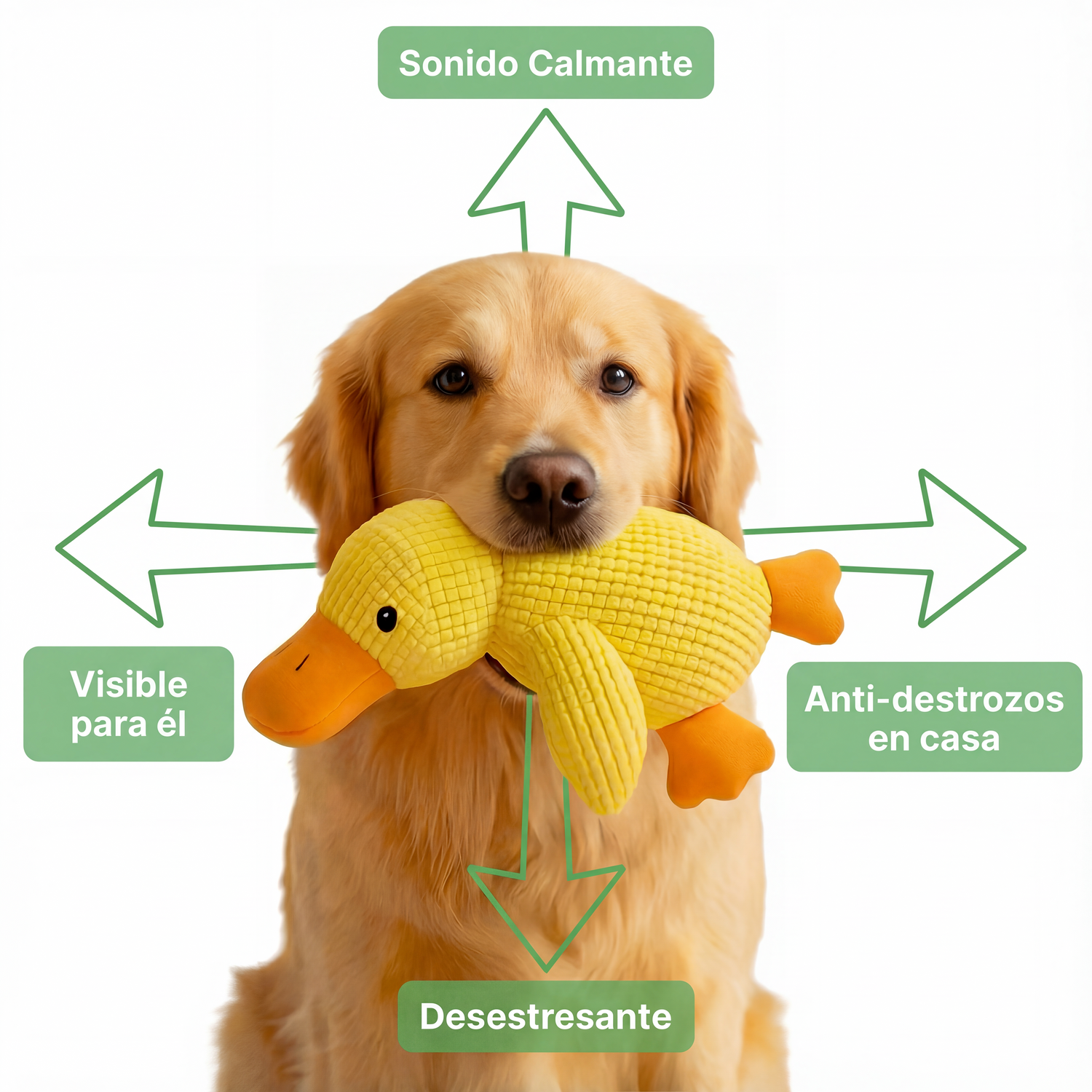 El Pato Calmante ayuda a perros ansiosos a relajarse naturalmente usando sonido, textura y color diseñados específicamente para el cerebro canino. Sin medicamentos. Sin entrenamiento complicado. Solo calma instantánea.