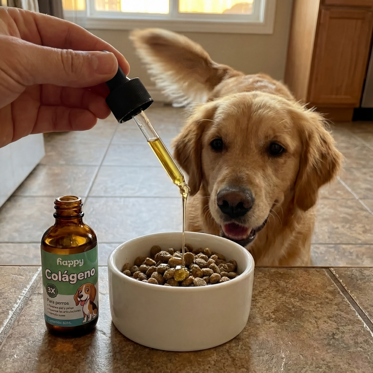 Formato líquido de mayor absorción — el cuerpo de tu perro lo aprovecha mucho mejor que una pastilla o un chew procesado a alta temperatura.